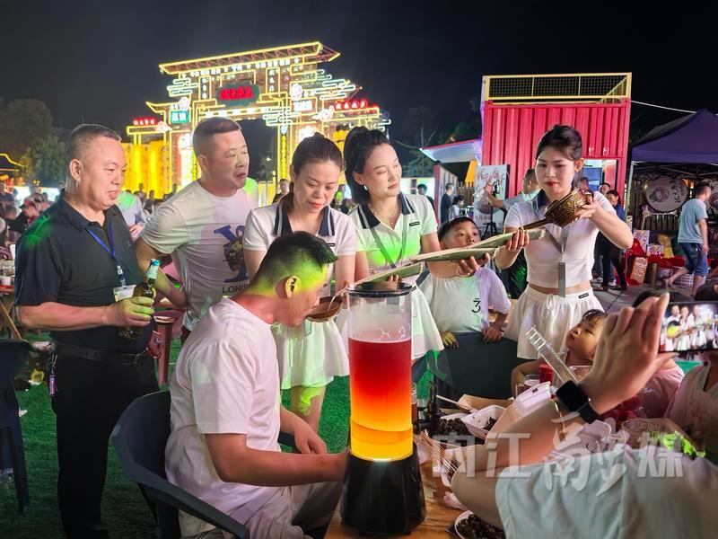 6月14日晚,资中状元市集首届龙虾啤酒嘉年华活动暨紫摇红血橙鲜啤上市活动正式启幕。