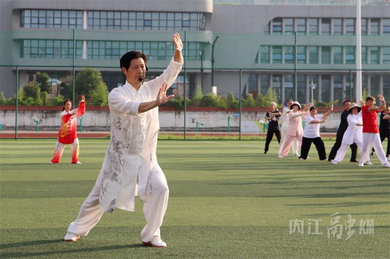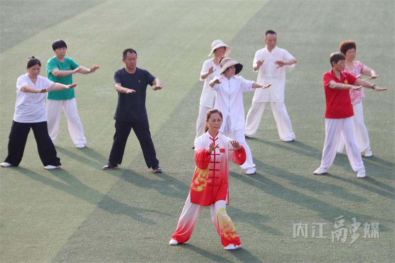 6月16日,记者前往内江市资中县体育场看到,群众在教练的指导下学习杨氏太极拳。
