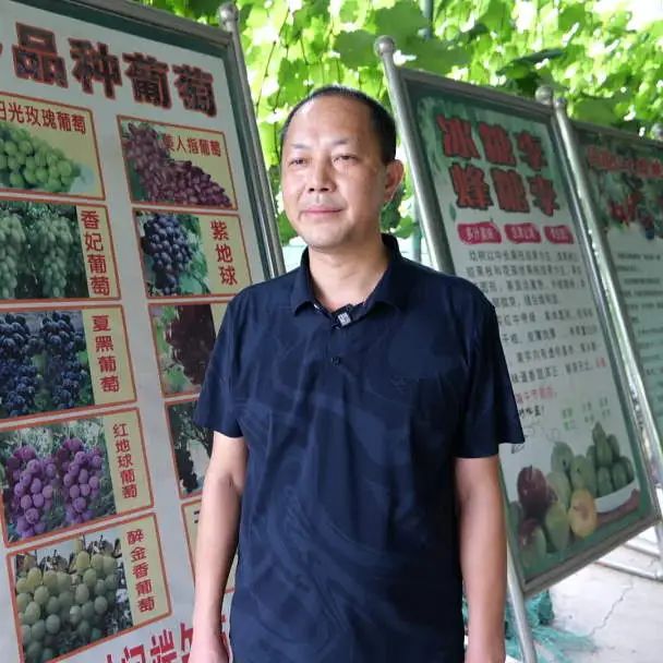 金泰葡萄园的负责人罗兆荣:“在资中种植葡萄已经有11年了,葡萄园占地面积179亩,品种有红地球、高妻、香妃、夏黑、阳光玫瑰等9个,整个葡萄园的采摘期将从现在延续至10月。”