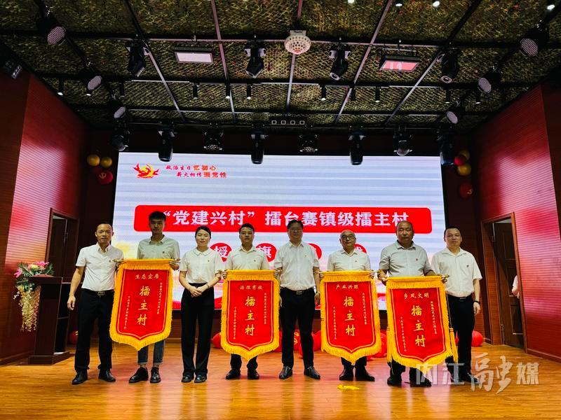 随后,在镇级“党建兴村”擂台赛上,遴选的8个参赛村聚焦“产业兴旺、生态宜居、乡风文明、治理有效”,依次上台比“实功”、晒“经验”、亮“成绩”,打“擂台”。领导点评后,评委现场进行综合评分,竞逐出4个镇级擂主村,由镇党委颁发流动红旗。擂台赛现场气氛热烈,8个村参赛代表准备充分,各展风采,赛出了各村抓党建促乡村振兴“加速度”,营造出比学赶超、争创一流的良好干事创业氛围,彰显了新时代基层干部的精神风貌和责任担当。