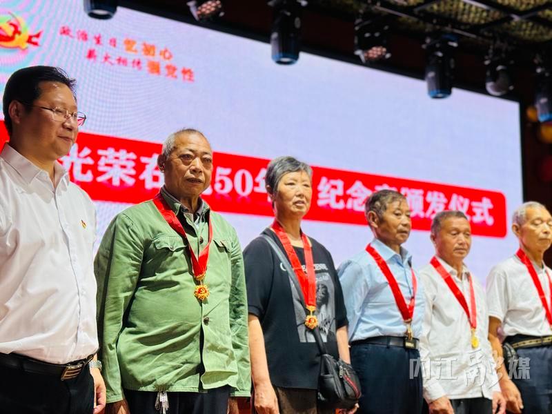 宣誓后,为退休支部和各村(社区)20余名党龄50年的老党员代表颁发“光荣在党50年”纪念章,对他们忠诚奉献、坚守初心、不懈奋斗表示肯定。颁发纪念章,进一步增强了老党员的荣誉感、归属感和使命感,同时激励新时代年轻党员在老党员的精神感召下传承红色基因、赓续红色血脉,立足本职工作,守初心、担使命。