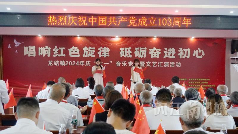 6月28日,资中县龙结镇以“唱响红色旋律 砥砺奋进初心”为主题,开展庆“七一”音乐主题党课活动。180余名机关、村(社区)党员代表现场聆听党课。