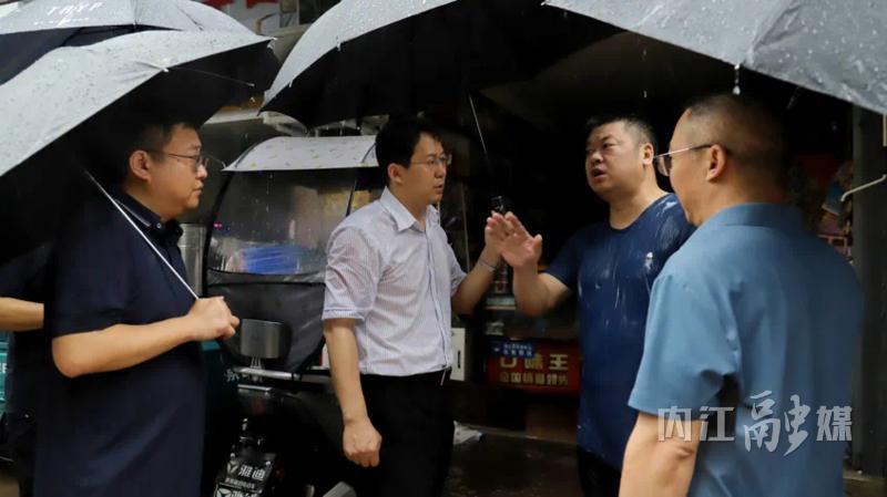 7月17日,资中县突遭强对流天气,平均降水量150毫米。下午4时许,暴雨倾盆,内江市委副书记、资中县委书记路松明前往水南镇、重龙镇现场督导城区排水防涝工作。县委副书记、县长唐荣参加现场督导。
