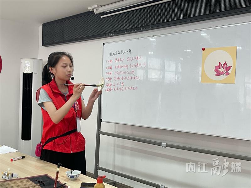 爱心志愿者黄心婕表示,自己在美术课中辅导学生,也是教学相长的一个过程,付出了爱心,也锻炼了自己的能力。