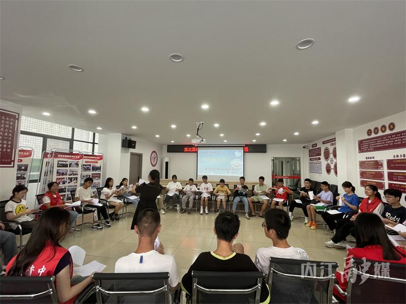 8月4日,资中沱江卫士志愿服务队在资中县新时代文明实践中心举行“青春逐梦 爱心护航”爱心微课堂结业典礼,爱心志愿者、学生和家长近80人在活动中分享了学习成长经历。