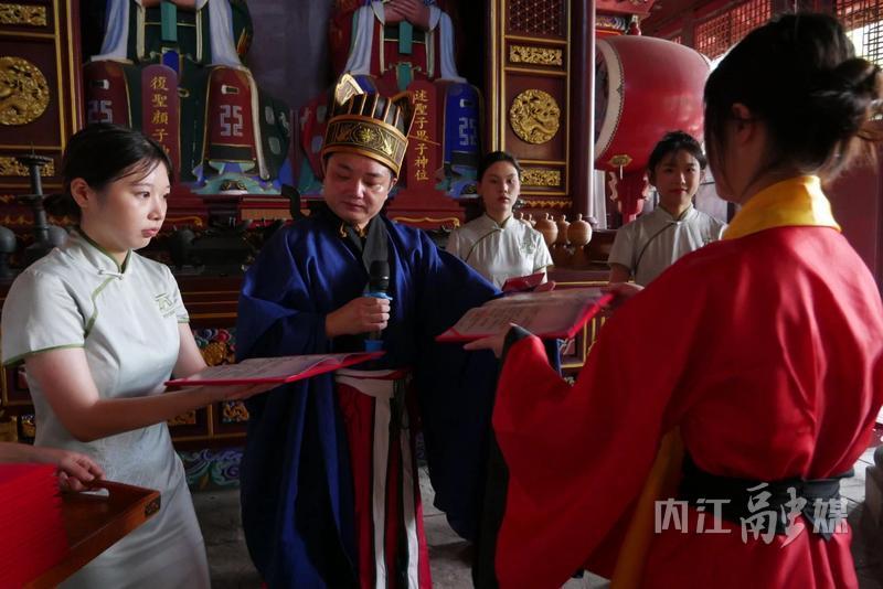 据了解,资中文庙是我国现在仅存完整的29座文庙之一。此次“中华成人礼”活动,也是资中文庙首次举行成人礼。成人仪式不仅是一次心灵洗礼,更是孩子们成长的新起点。通过让青年学子亲身体验充满文化底蕴的传统仪式,接受中华优秀传统文化的熏陶,激励他们成为一名讲礼仪、有文化、有理想、有家国情怀的有为青年。