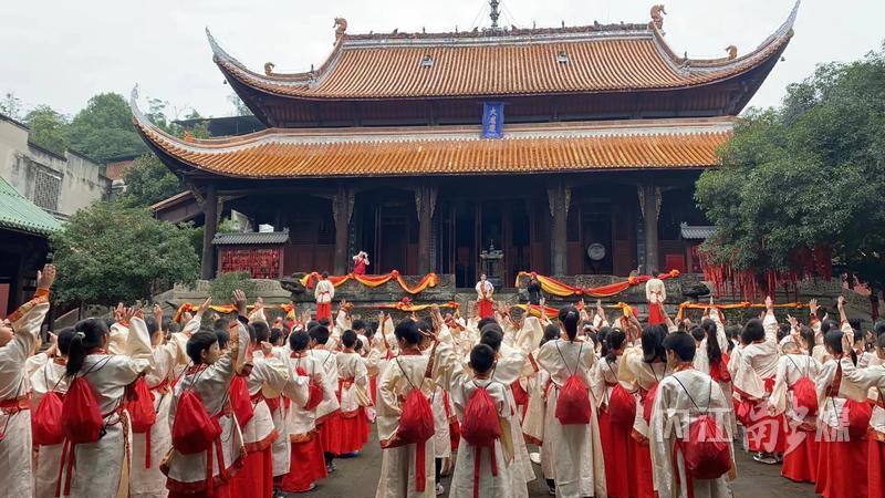 “今天我们来到资中文庙、武庙,亲身体验了正衣冠、拜师礼等传统仪式,回去以后,我要好好学习,争做品学兼优的好学生。”水南镇和鸣小学学生陈瑾意开心地说。