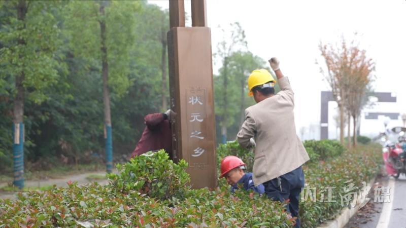 11月7日,在资中县瓦窑坝片区基础设施建设项目——西干道二期建设现场,工人们井然有序地做最后的收尾工作。