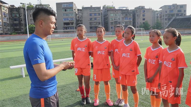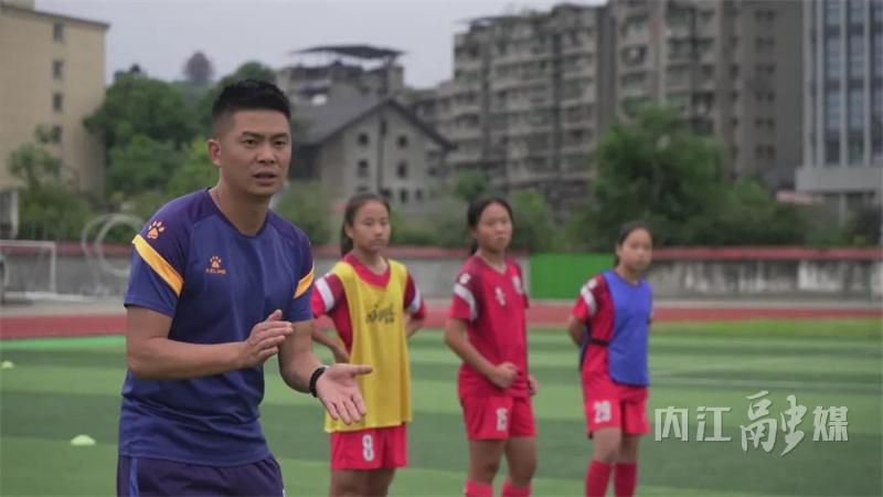 每天下午5点半,四川省内江市资中县资中体育场都会响起廖峻锋的声音,一群女足小将在他的带领下,精准进行带球、卡位、过人等训练。