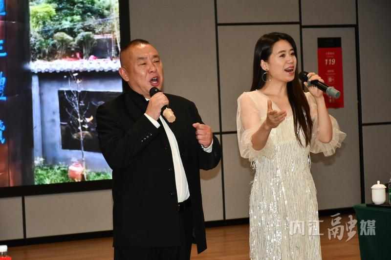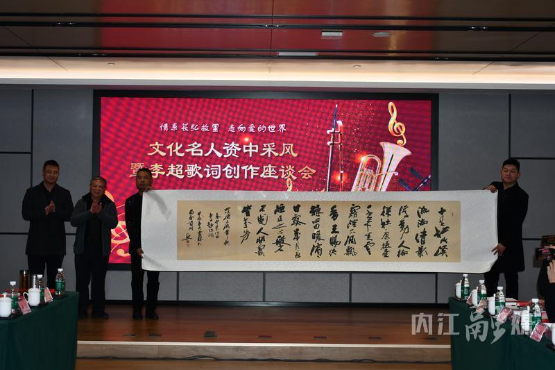 对于李超新作词的《人间处处皆芬芳》,内江书法家田世华忍不住挥毫泼墨,将其词作书写成书法作品相赠。同时,现场邀请歌手演绎了李超和佟文西作词歌曲,展示资中木偶非遗节目。