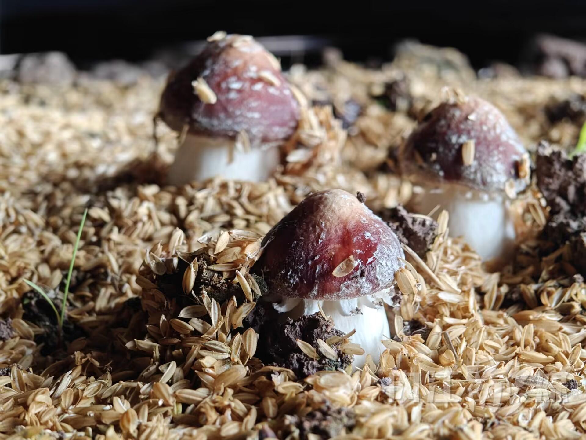 日前,记者见到周在良的时候,他正在观察新引种的“致富伞”——桑枝菌生长情况。