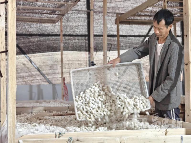 “我2013年在沈阳打工,工资还可以,但听说家乡大力发展蚕桑产业,就想回来试试。”周在良告诉记者,他承包了50亩地种植桑树养蚕。