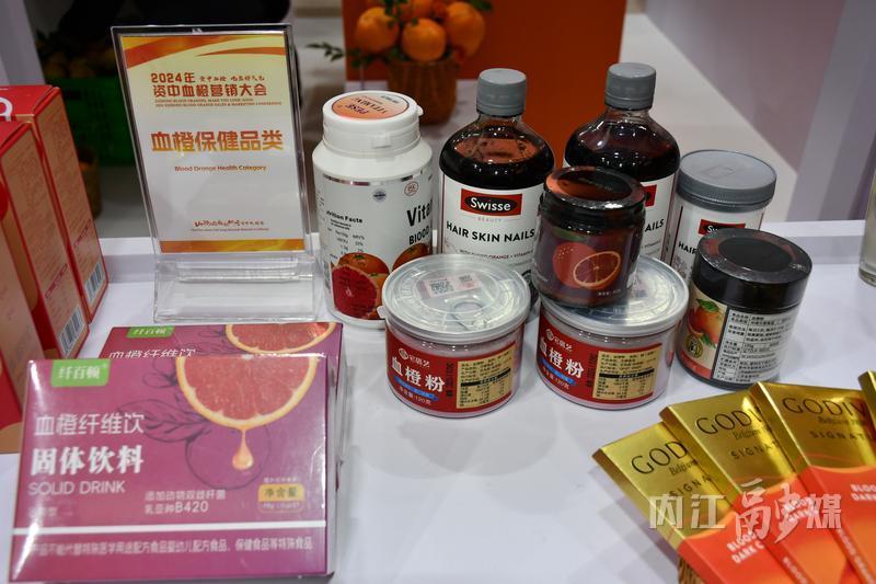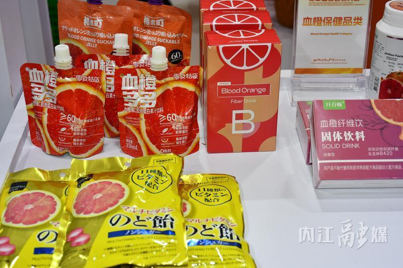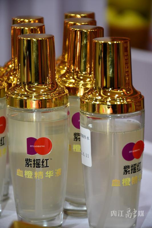 在血橙精深加工展区,血橙巧克力、血橙果汁、血橙固体饮料、血橙保健品、血橙精华液、血橙面膜等血橙精深加工产品,吸引着客商和来宾驻足品尝和了解。在工作人员的介绍下,大家品尝血橙饮品,好奇端详资中血橙的创新研发。