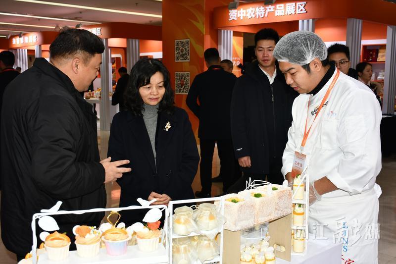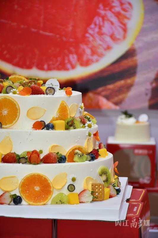 在甜品区,点缀着新鲜血橙果肉的血橙三层蛋糕抓人眼球,展位前摆放的血橙小蛋糕、布丁、面包小巧精致、“橙”味满满,血橙冻配上酸奶冻的q弹口感,加上橙色、黄色、绿色的清新点缀,刺激着客商和来宾的视觉味蕾,在大家口口相传的推荐下,成为交流区的畅吃展位。