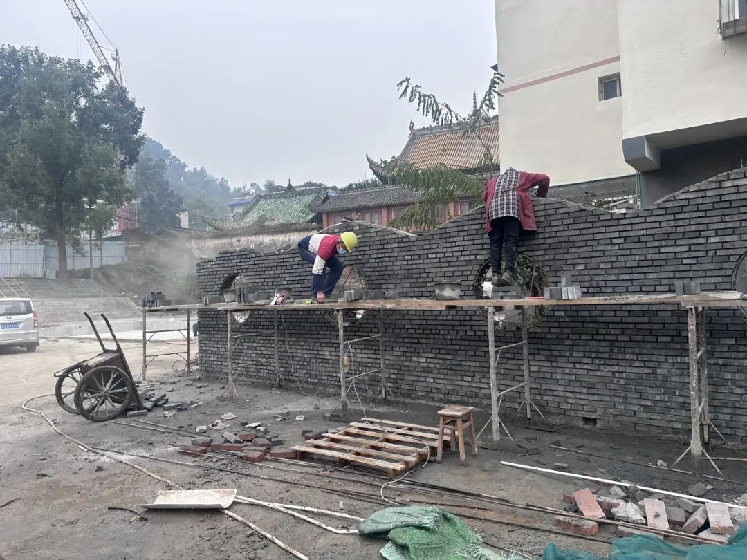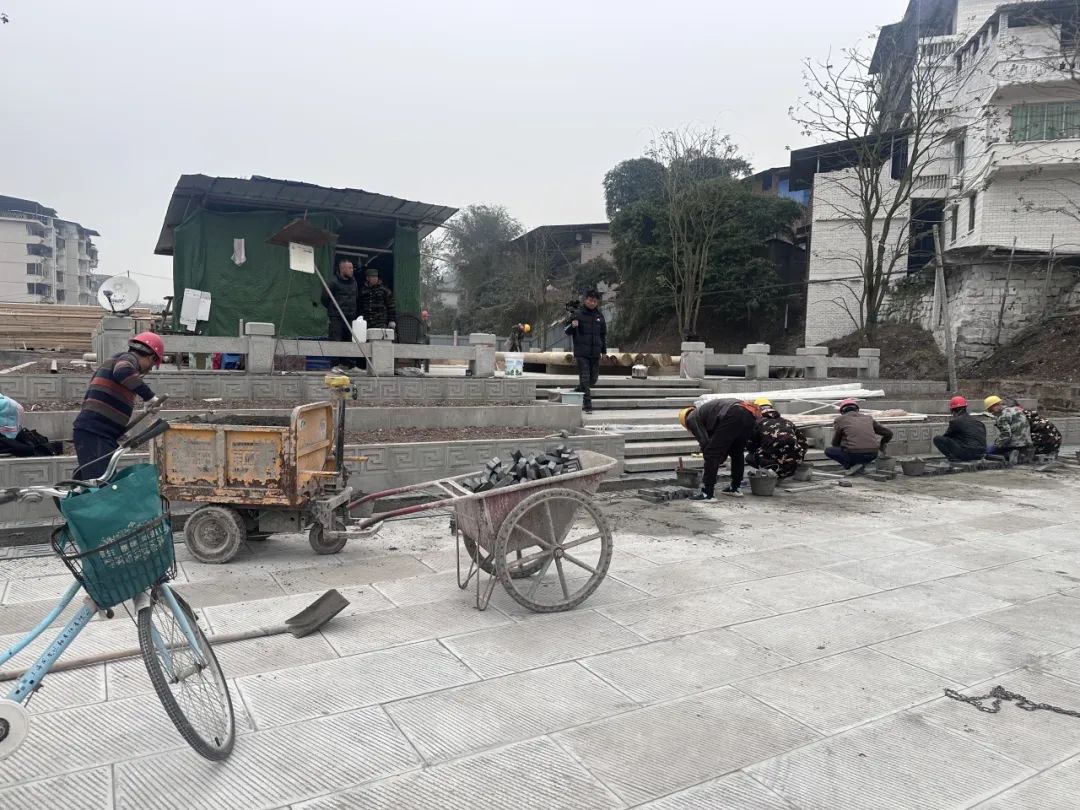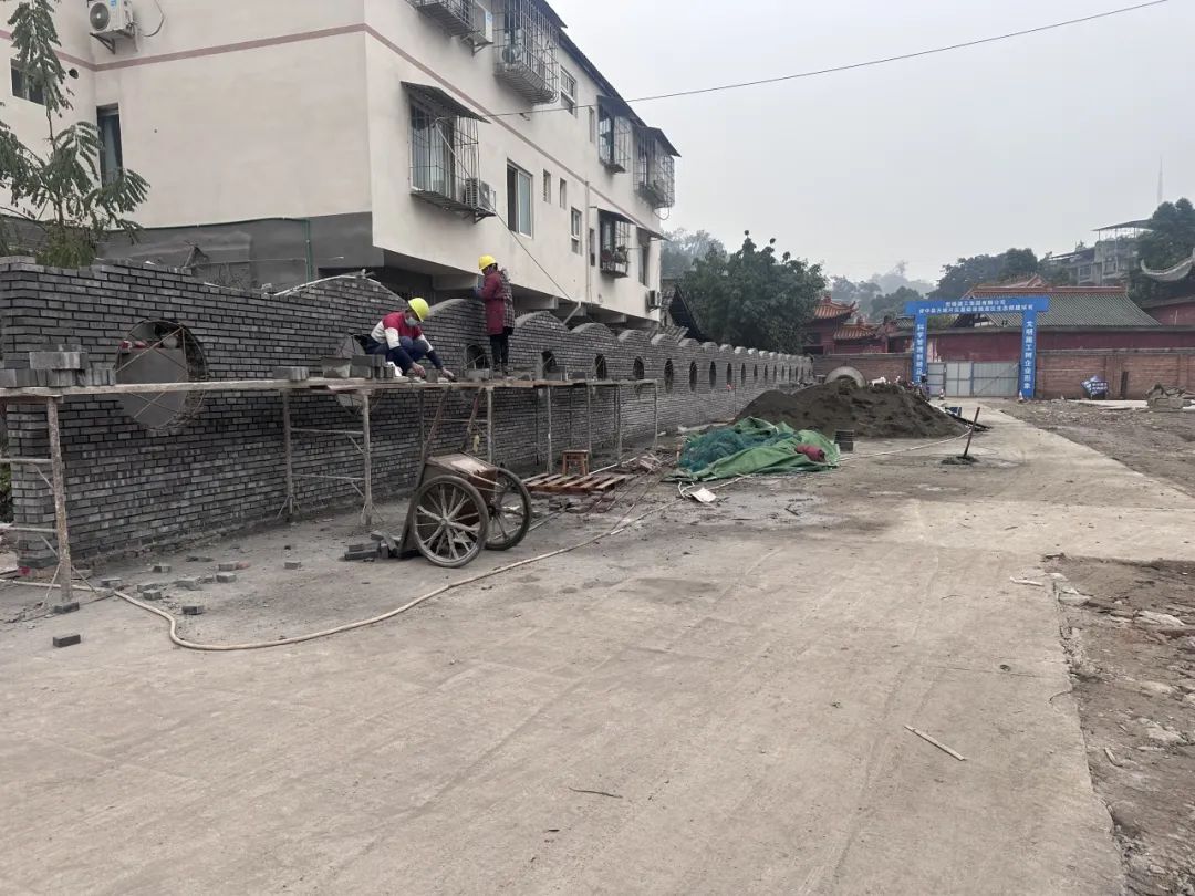记者在施工建设现场看到,工人们正在铺设石材、砌筑青砖围墙和种植树木,现场工人正在加班加点抢工期,力争春节前按照预定目标全面完工并投入使用,让参观游玩的群众感受到资中丰富的文化特色。