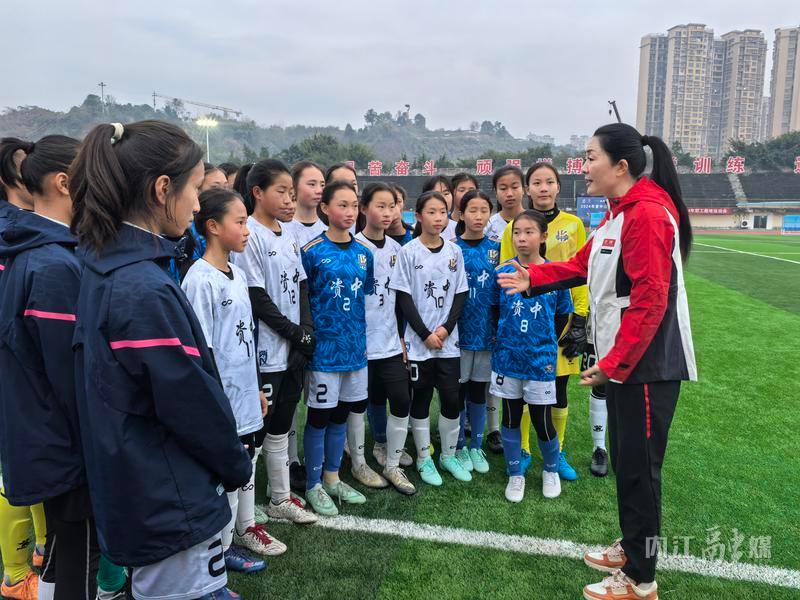 仪式结束后,嘉宾们与资中女足队员合影留念,并观看资中女足教学赛,上海市杨浦区青少年业余体育学校(上海市杨浦区青少年体育训练中心)女足总教练浦玮与资中女足队员互动交流。