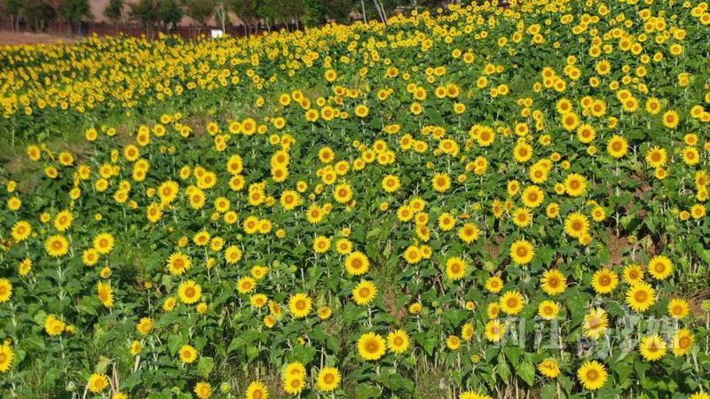 近段时间,资中县重龙山景区内,近百亩向日葵迎来盛花期,金灿灿的花海宛如一幅巨型油画。据悉,向日葵花期将持续至9月初。